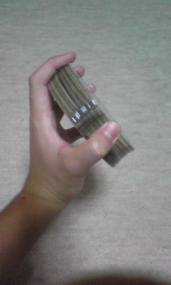 ちわ うさぎやがオープン。 さっそく行ってみたらすんげえ大量の人間がいた。 ハナとテラと行ったけど、買い物どころではなかったので帰宅。 ありゃまた後日いくしかねぇの。 家に着いたら無性に物をぶっ壊したくなったから、本棚にあるいらん本とかを全部処分した。 意味がわからん。 とりあえず去年の夏から全部ためてた進研の問題と解答を処分。 解答だけ保存して、問題は捨てることにした。 膨大な量になった。 問題用紙の間に挟んであったいらない余った解答用紙をゲット。 これで上質な計算用紙を大量に確保したことになる。 いるヒトは言ってくれたらわけてあげるよ。 片付けに2時間半ばかし費やした。 気づいたら夜になってた。 リスラボとか、cosmoviews、newsbreaks、twins40とか、winstepとか、とりあえず全部捨てた。 付属のCD多すぎてワロタ こんなにあったとはな。 びっくりした。 POLESTARとか、CDケース付きだった。 いただいた。 中身だけ捨てた。 そしてキレーになった机に楽譜を広げてギターを弾くのであった。 明日は京大模試である。